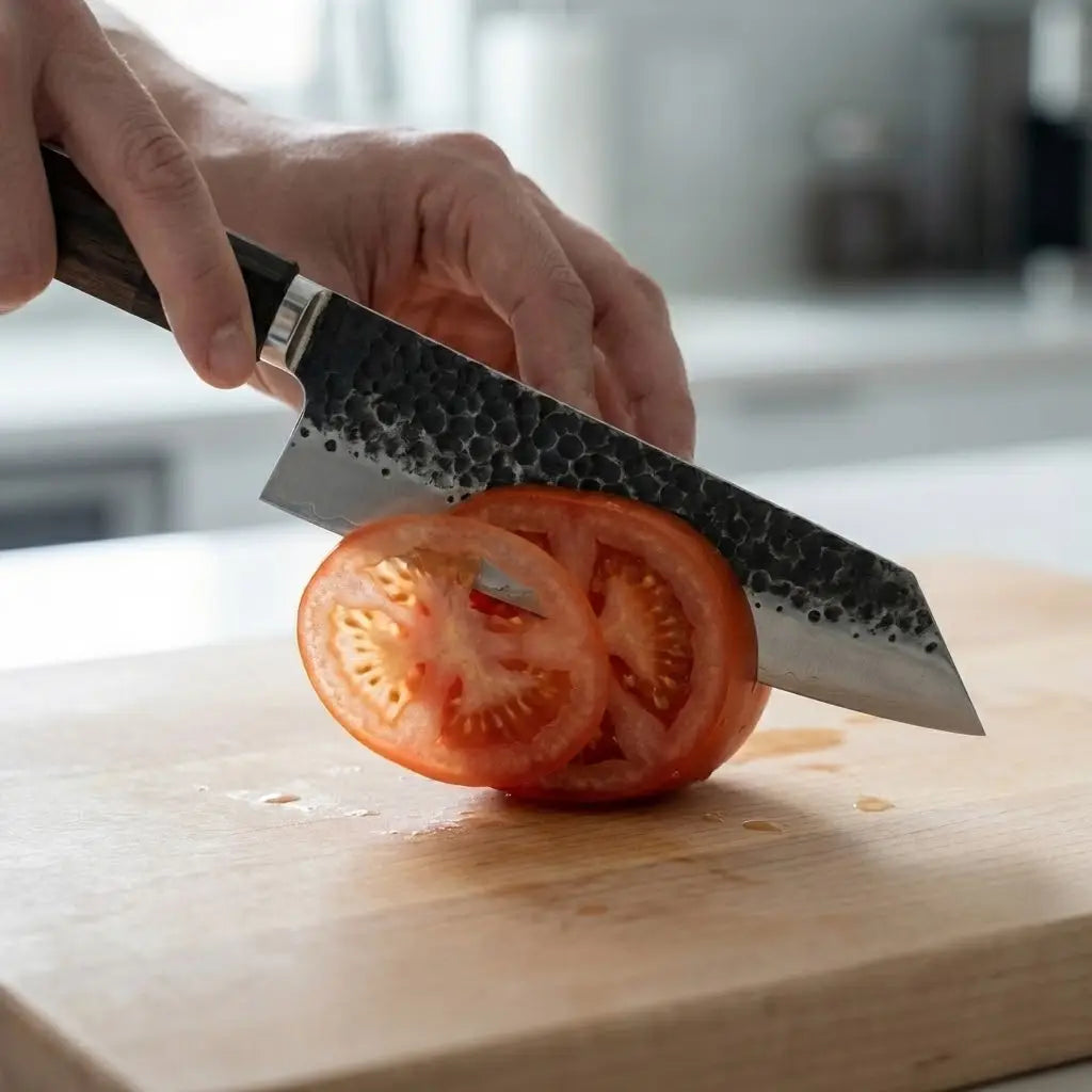 I cook six nights a week, and every knife I’ve owned before turned into a butter knife after a few months. This one? Still slices tomatoes paper-thin after weeks of use. It feels like a professional tool, but it’s become part of my everyday routine.